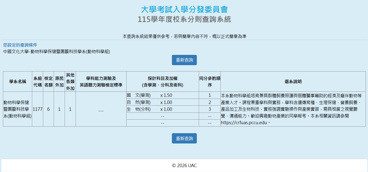 115學年度大學分發入學--動物科學保健暨園藝科技學系(動物科學組)
